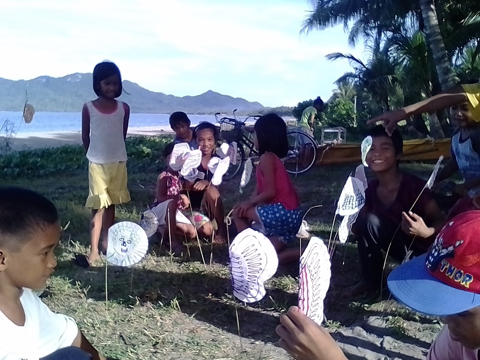 Other kids found a place to do their project - on someone's banca/boat. They use the front and the aft of the boat. There are several parked banca boats in the place and the kids sure found a use for them.