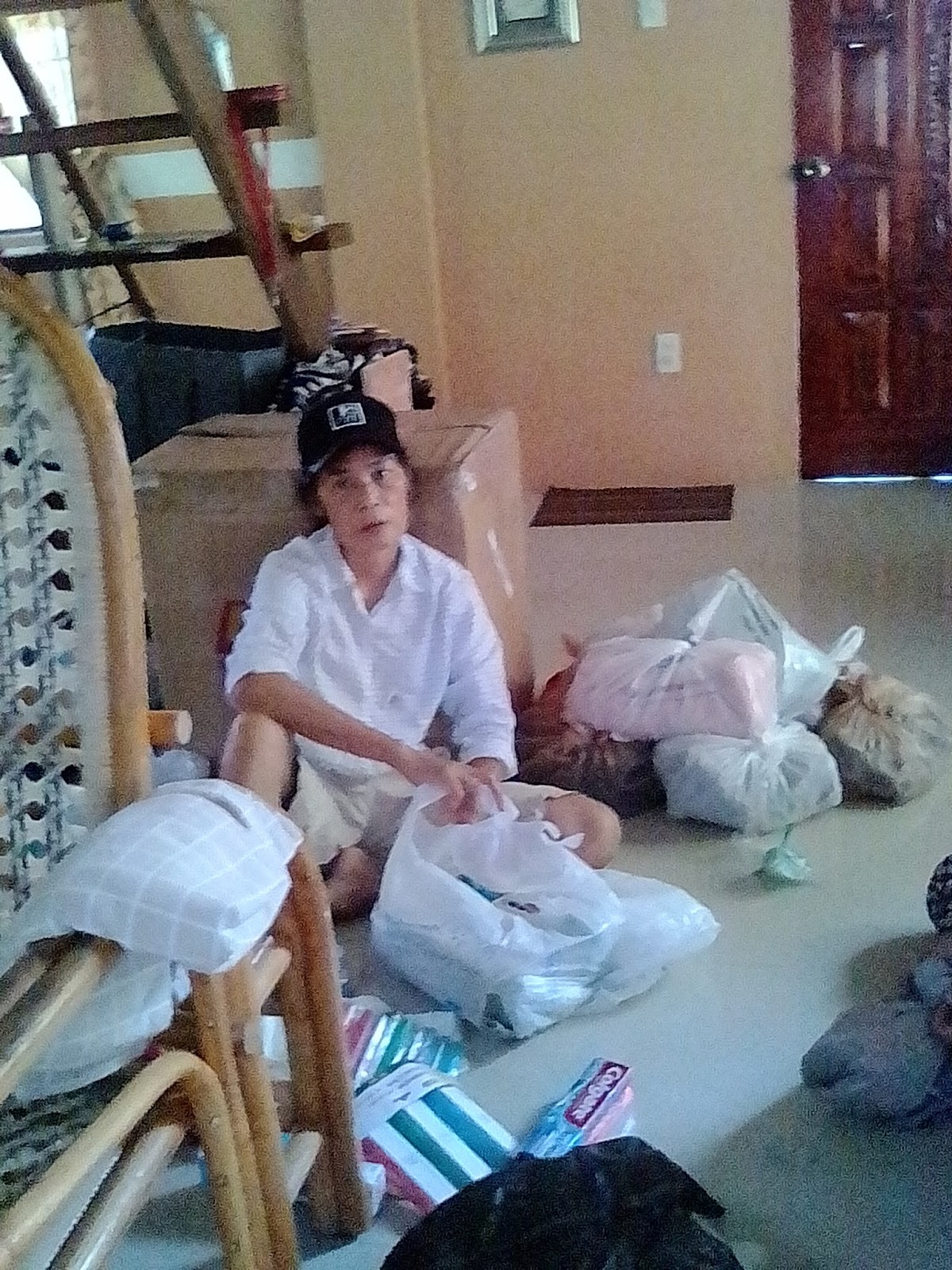 There is a cooking station in the shed where, unlike our makeshift "stove" before, it is on a platform so that we don't have to squat while cooking. Do you see the two pots in the background of the above picture? What a blessing to have a place like this to cook our champorado.